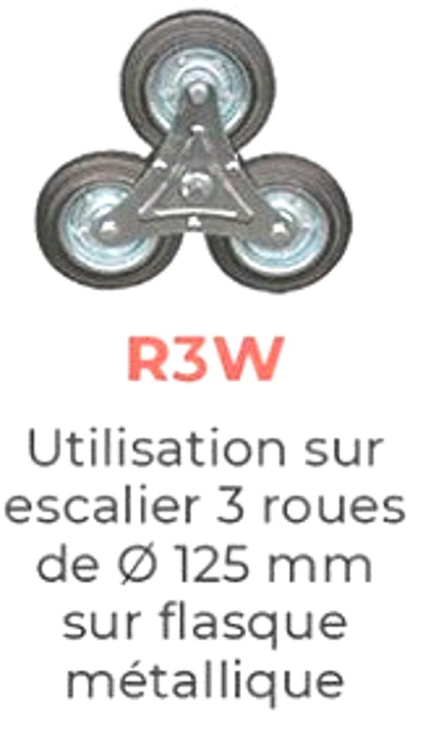 Support avec 3 roues en caoutchouc noir avec roues de diamètre 160 mm sur jante acier