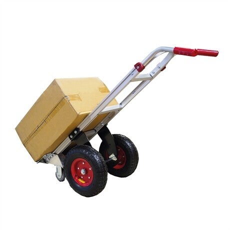 Grâce à ses roues à grand diamètre, le diable tout terrain permet de franchir des obstacles comme des trottoirs et escaliers. Il est également équipé de 2 roulettes pivotante pour plus de maniabilité et d'une bavette fixe renforcée.