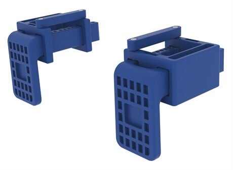 Cet accessoire est conçu pour assurer la préhension de bacs, caisses ou boîtes sur le châssis des diables électriques de la gamme DMEG. Les crochets de maintien garantissent un maintien stable et sécurisé pendant déplacement des charges dans les escaliers.