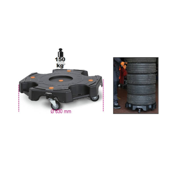 Socle porte-pneus avec des roues en caoutchouc non marquantes.